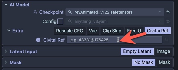 Some Cushy Apps allow to paste a Civitai special code to download and use the model right from your ComfyUI workflow execution.