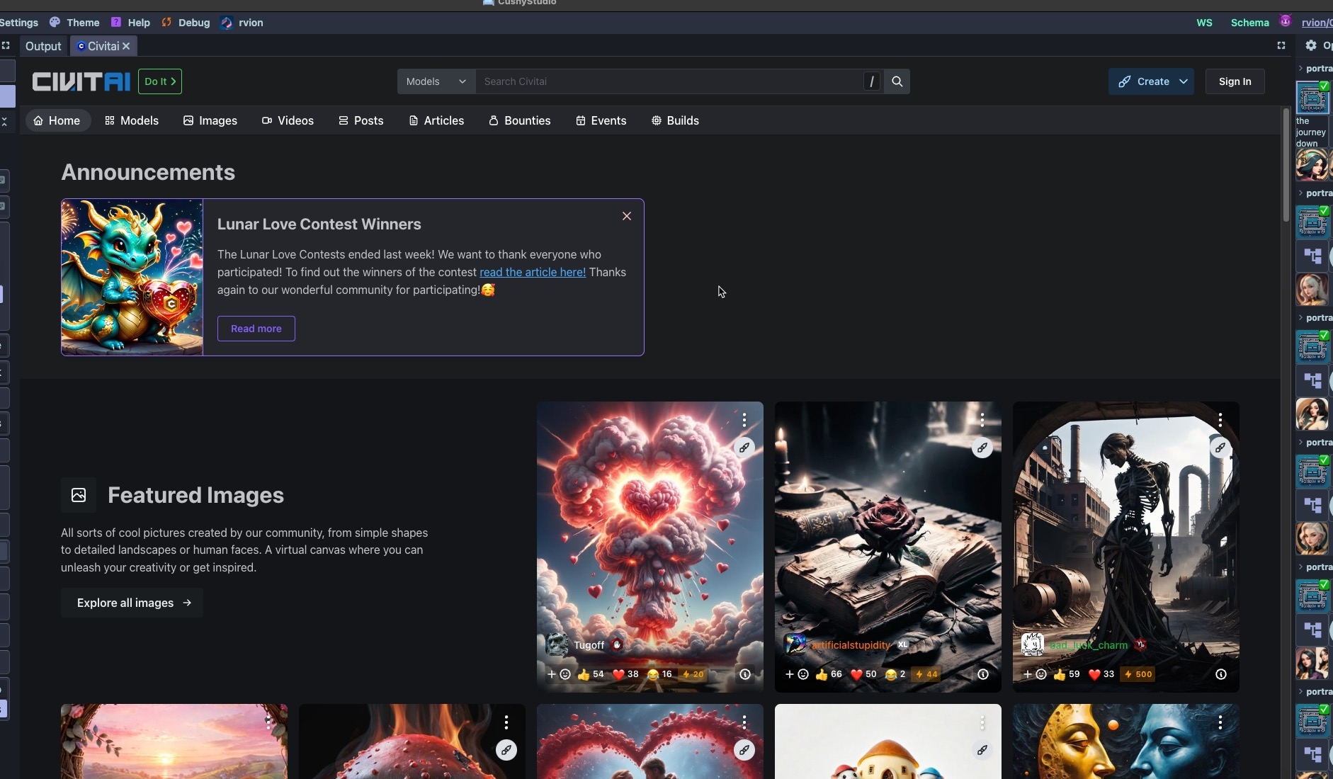 You can also browser the Civitai official UI directly from Cushy using and embedded iframe; it will allow you to search things differently, or will allow you to copy the ckpt-air.